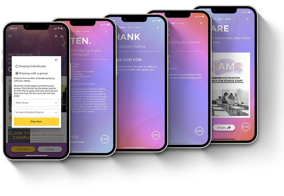 We encourage all campus movements to emphasize prayer and the Claim Your Campus app is a great way to engage students in prayer.